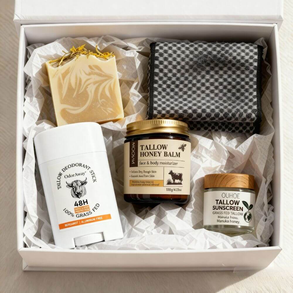 Vi använder gräsbetat talg, kallslungad honung och olivolja av högsta kvalitet. Det här är en investering i din hud, inte en kostnad.